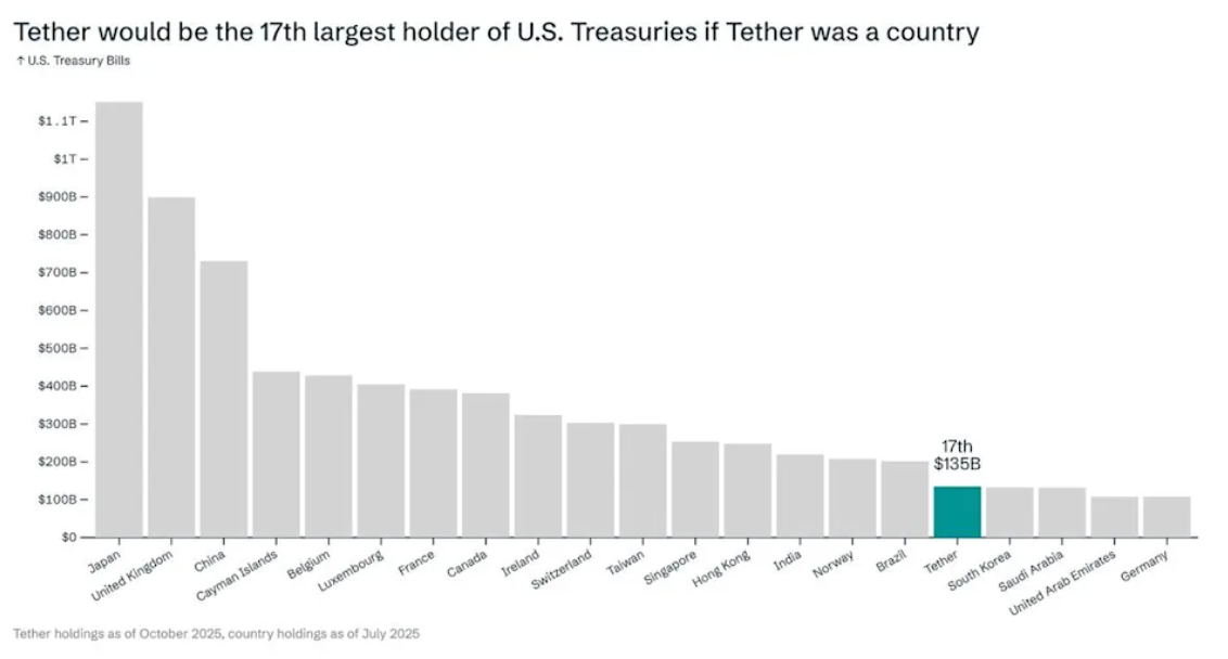 And how can we not talk about stablecoins? Who would have thought in 2017 that Tether would become the world's most valuable private startup, and that this same company would become the largest gold holder in the world (if we removed countries), holding more t-bills than South Korea, the UAE and Germany, while also recently making a public offer to buy Juventus Football Club? But the value of stablecoins is captured by one entity, retail cannot benefit from it (that may change...)